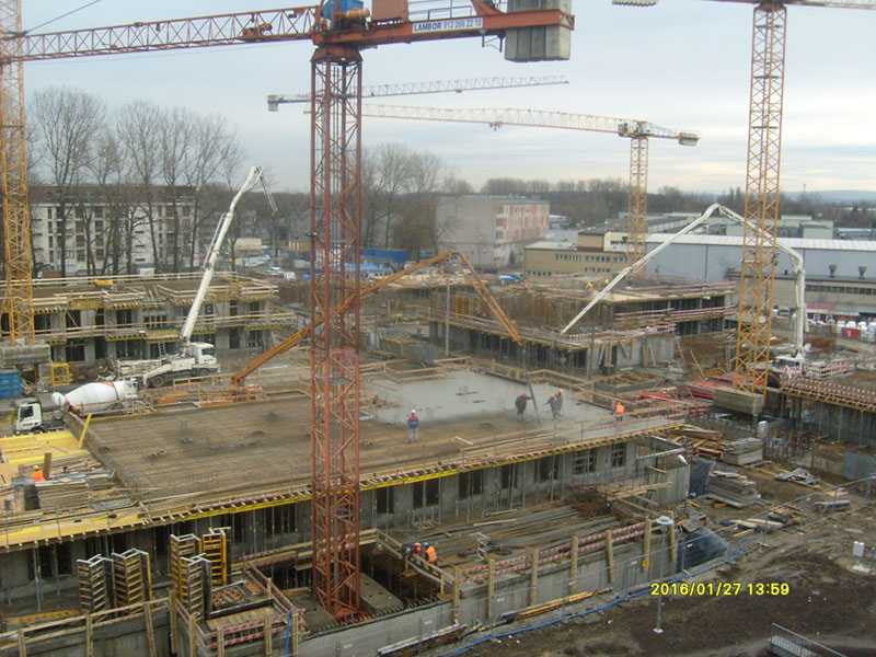 Krakbau Spółka Akcyjna errichtet in Polen als Generalunternehmen schlüsselfertige Bank-, Büro-, Krankenhaus-, Hotel-, Schulobjekte und andere öffentliche Einrichtungen. In Deutschland und in Frankreich haben wir Rohbauarbeiten (Stahlbetonkonstruktionen) als Subunternehmer von lokalen Bauunternehmen ausgeführt.
