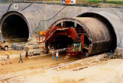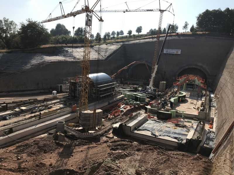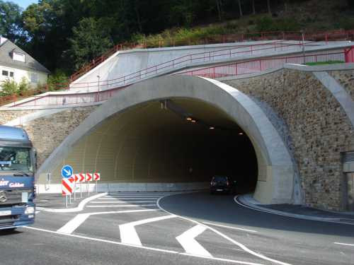 Auftraggeber: HOCHTIEF CONSTRUCTION AG. Umfang der Arbeiten: Eisenbetonarbeiten im Tunnel, Portale und Stützwände außerhalb des Tunnels. Länge des Tunnels: 711 m, Querschnitt: 70 m²