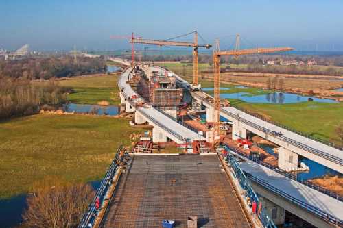 Krakbau Spółka Akcyjna spezialisiert sich auf Errichtung komplexer Brückenkonstruktionen sowohl mit traditionellen Methoden wie auch unter Einsatz moderner Technologien der Schalung und Vorschubrüstung.