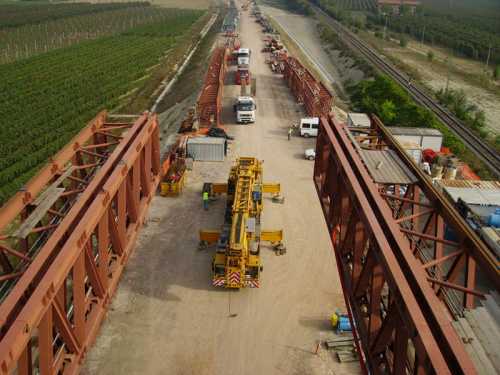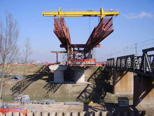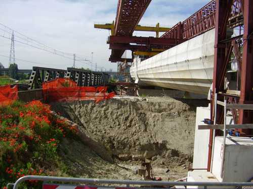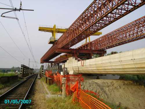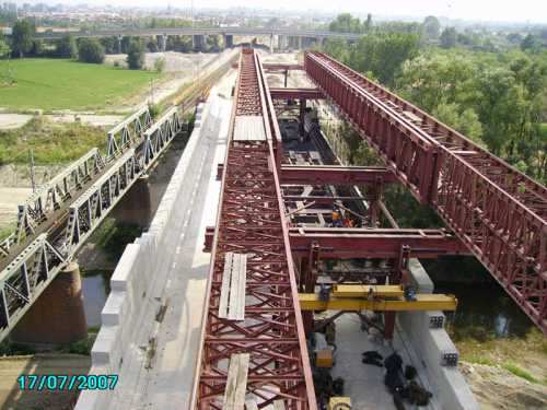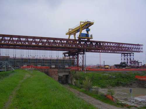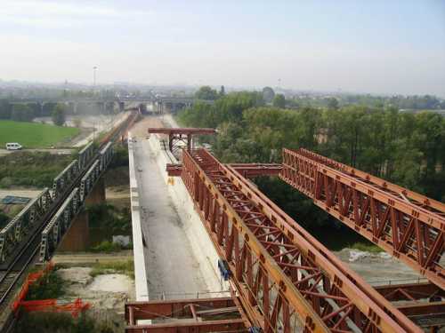 MOBILE SCAFFOLDINGS UNDER A RAILWAY FLYOVER, Modena, Italy