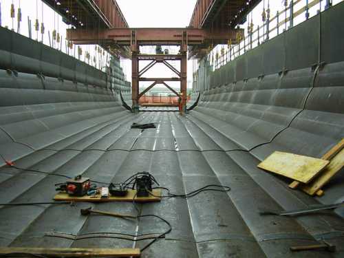 In offshore construction, Krakbau S.A. built reinforced concrete wharf protections in Cuxhaven port.